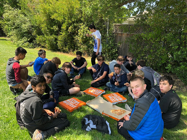 A bit of a pizza fiasco on the last day. They offered it for $5, but a bunch of the boys thought that was silly to pay that much for one slice, so they decided to order pizza from Domino's and get an entire half a pizza for $5. Somehow we got sucked into in and their poor planning made for a little stress. Ryan called to order the pizza when he got the list from Reggie and they said no dice...too busy, so Reggie suggested Costco,,,same answer. Good old Little Ceasars was able to accommodate, so the boys didn't go hungry! I guess that was against the rules because one of Reggie's friends saw me and told me he asked if he could get his own pizza and they told him no. I guess he learned his lesson that sometimes its better not to ask! And Reggie learned a lesson that you must collect pizza money from your friends, otherwise you pay the balance. Luckily, most of them paid.